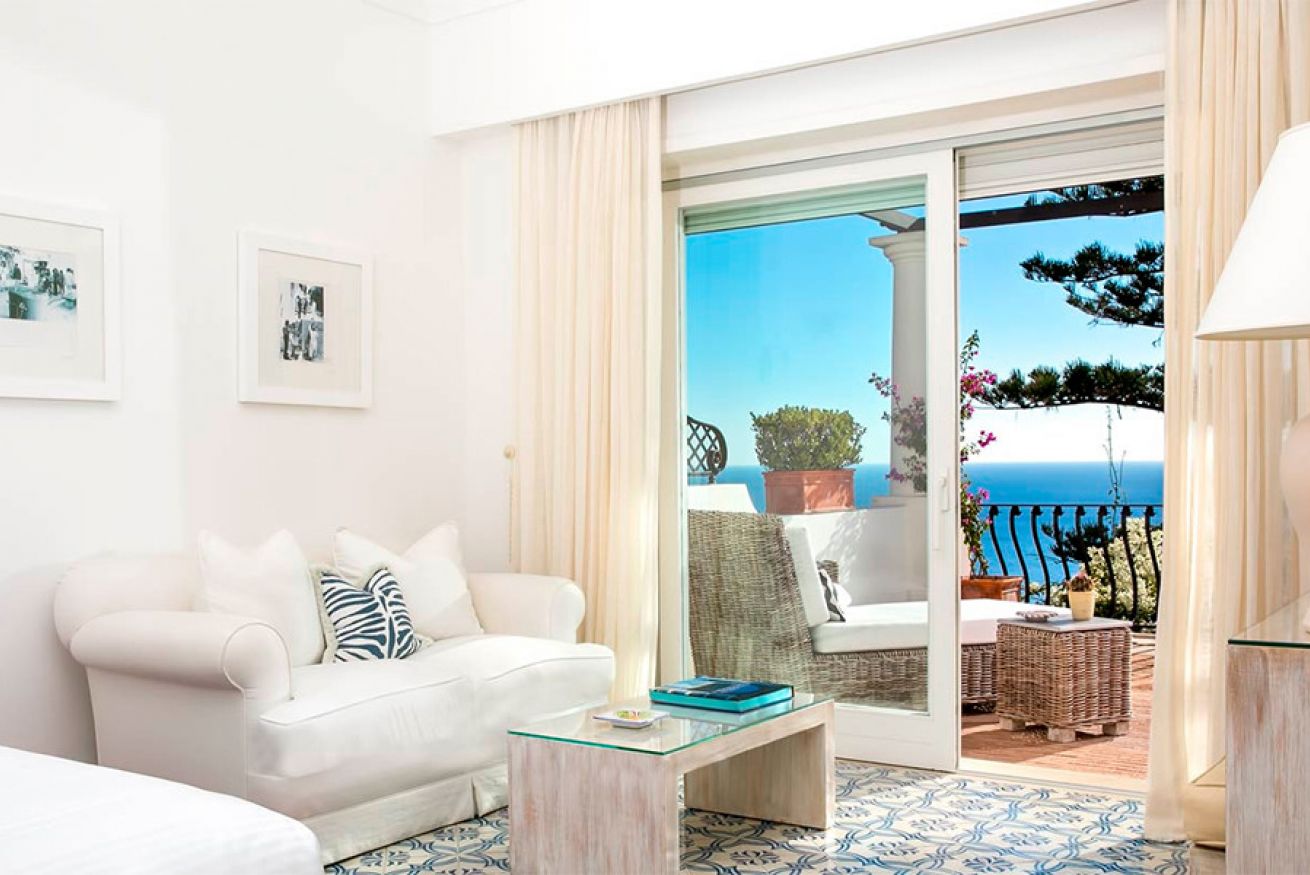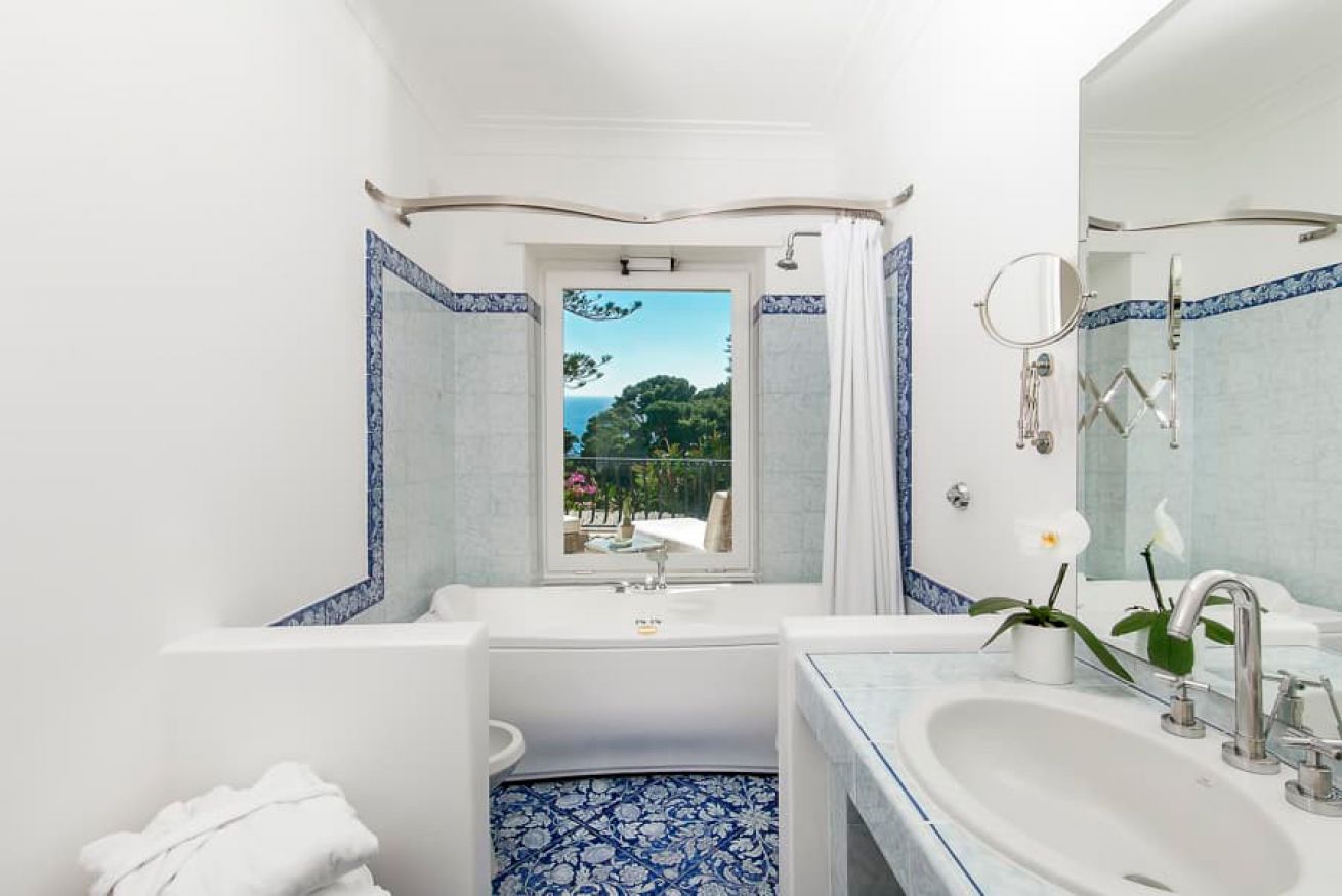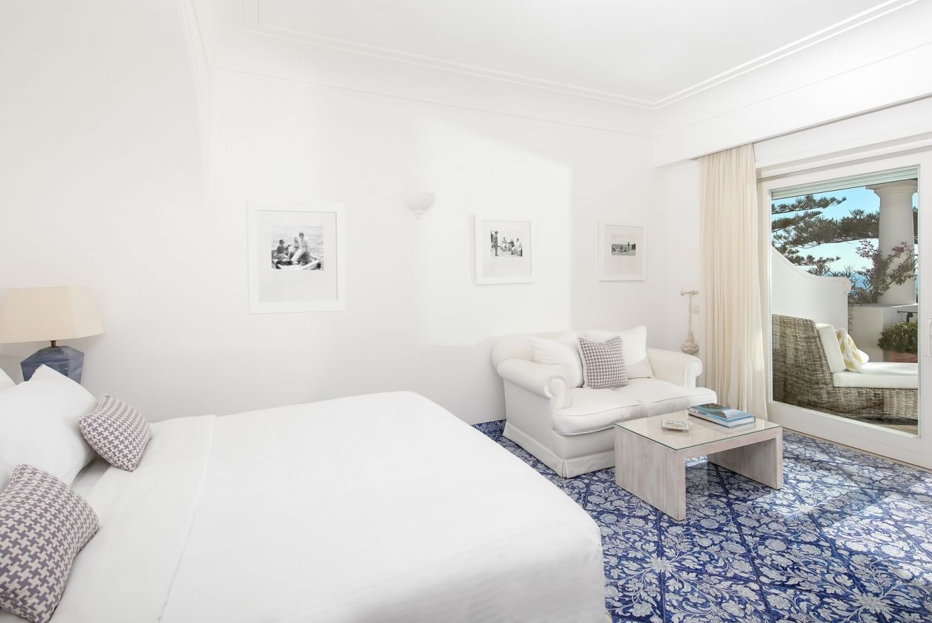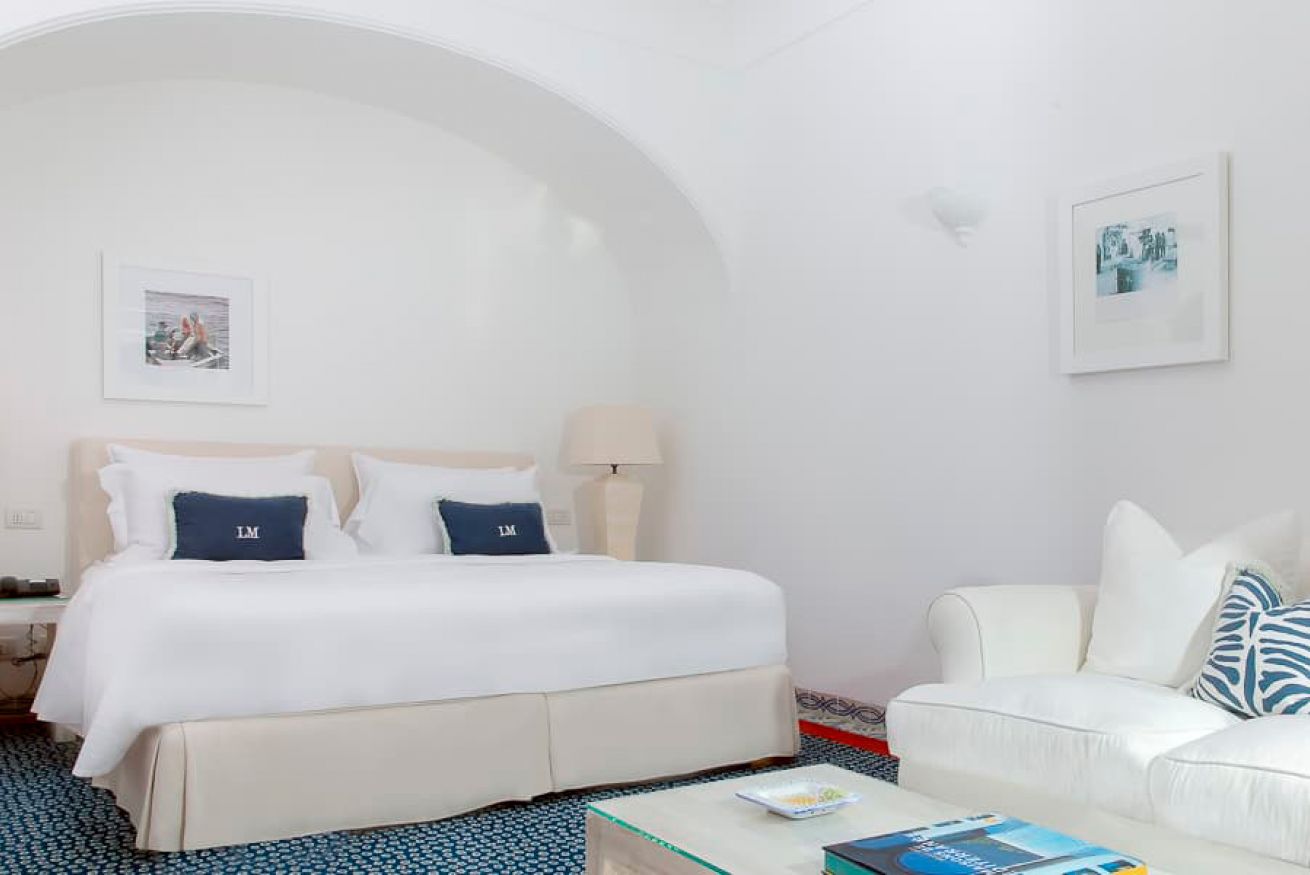 In camera esclusiva linea cortesia "Carthusia Capri" e Biancheria di lino